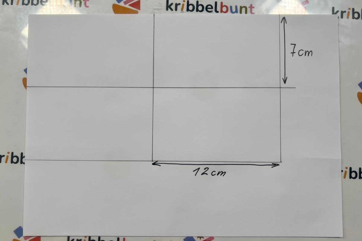 - Anschließend schneidet ihr mindestens vier weitere Rechtecke aus dem weißen Papier in den Maßen 12 cm x 7 cm. Das wird euer Schreibpapier im Inneren des Heftes.