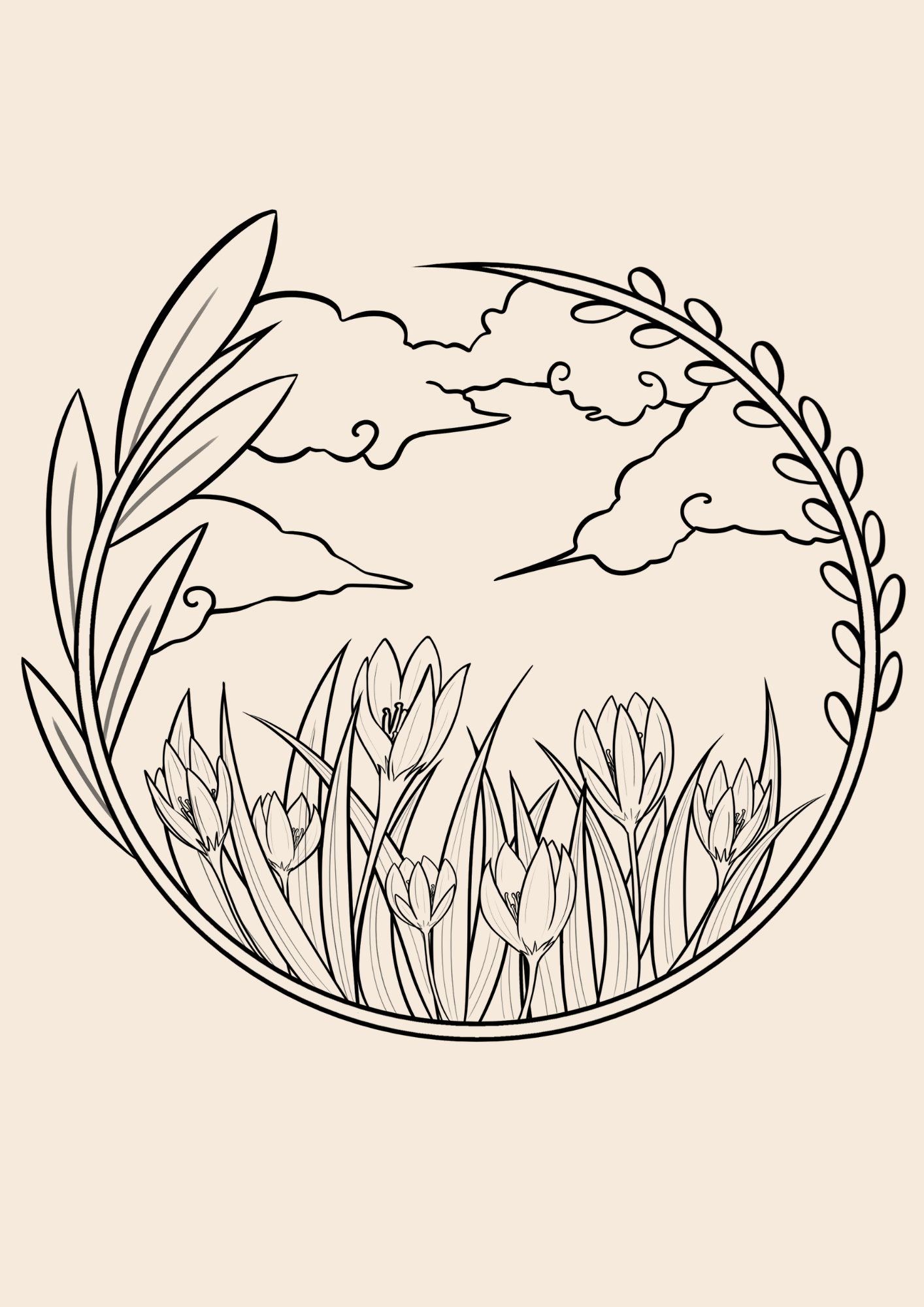 Ausmalbild Krokusse zum Ausdrucken als PDF