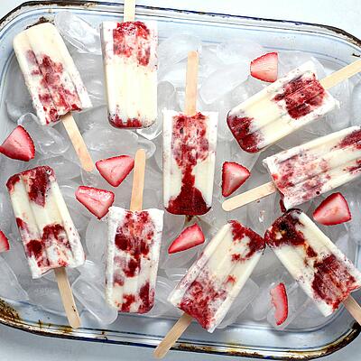- Befüllt das Glas mit anderem Obst. Dafür eignen sich z.B. Weintrauben, Blaubeeren oder Mandarinenstücken.