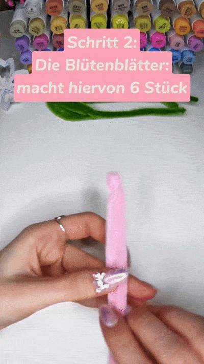 5. Danach wiederholt ihr den 4. Schritt für die Blätter der Blume: