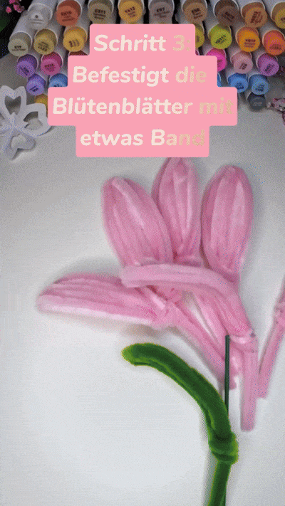 4. Befestigt nun die Blütenblätter an einem Stab :