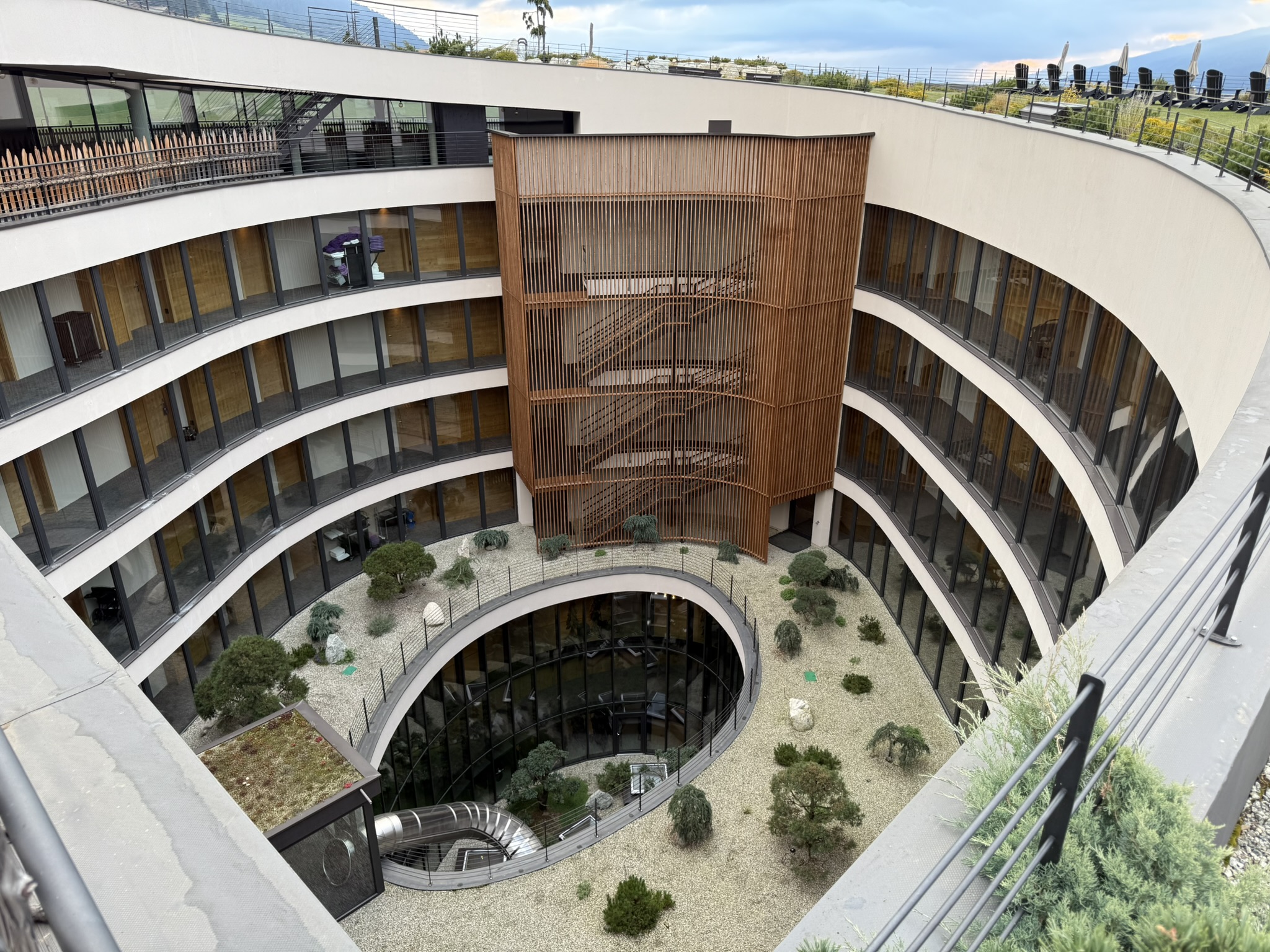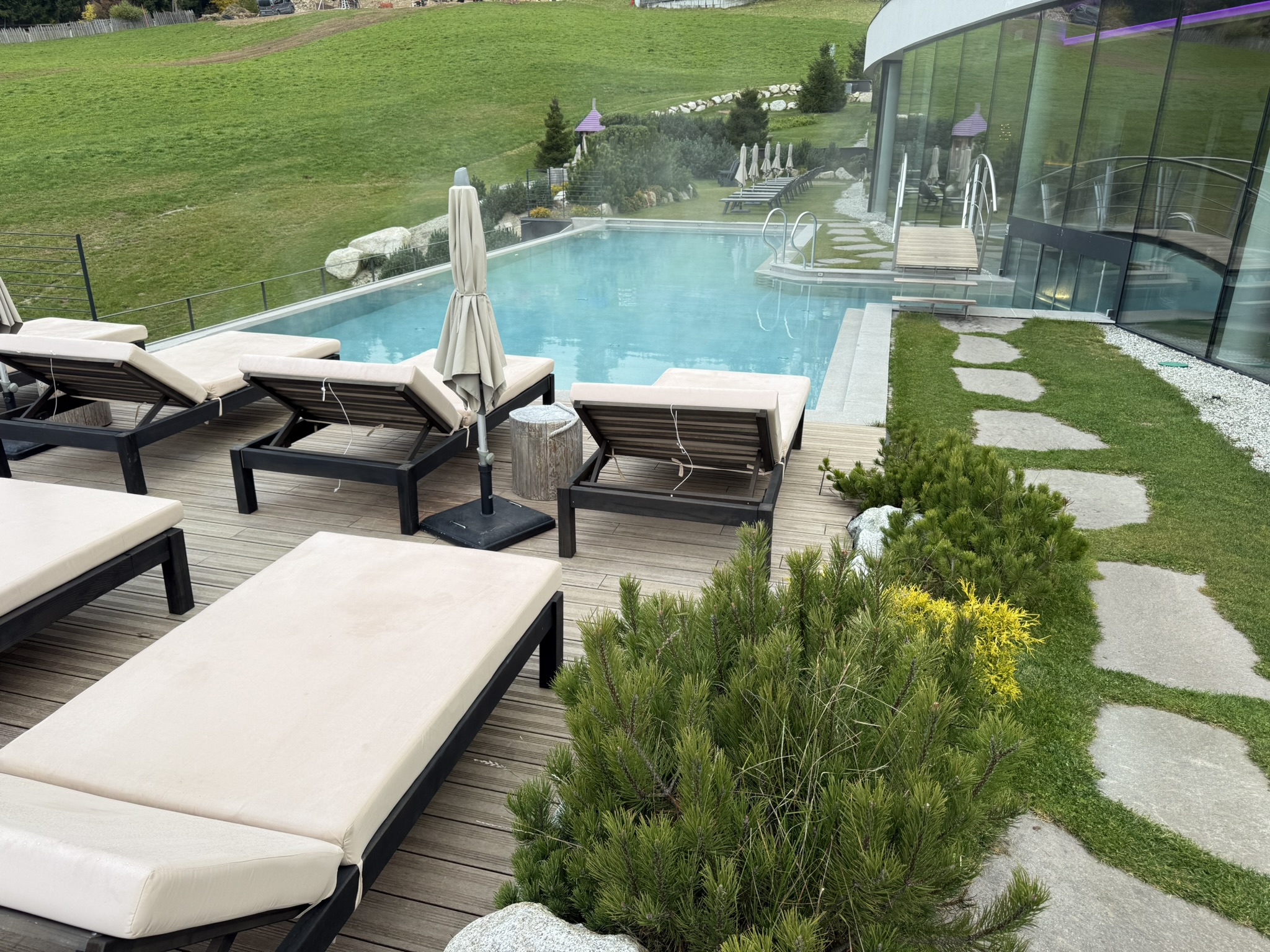 Im Familiamus Südtirol wird nichts dem Zufall überlassen. Der Kies liegt akkurat, die Scheiben glänzen, jeder Handgriff sitzt. Nach dem Rundgang führt uns Thea in die hauseigene App ein - das digitale Herzstück des Hauses mit Tagesprogrammen, Wellness-Reservierungen und Familienaktivitäten.