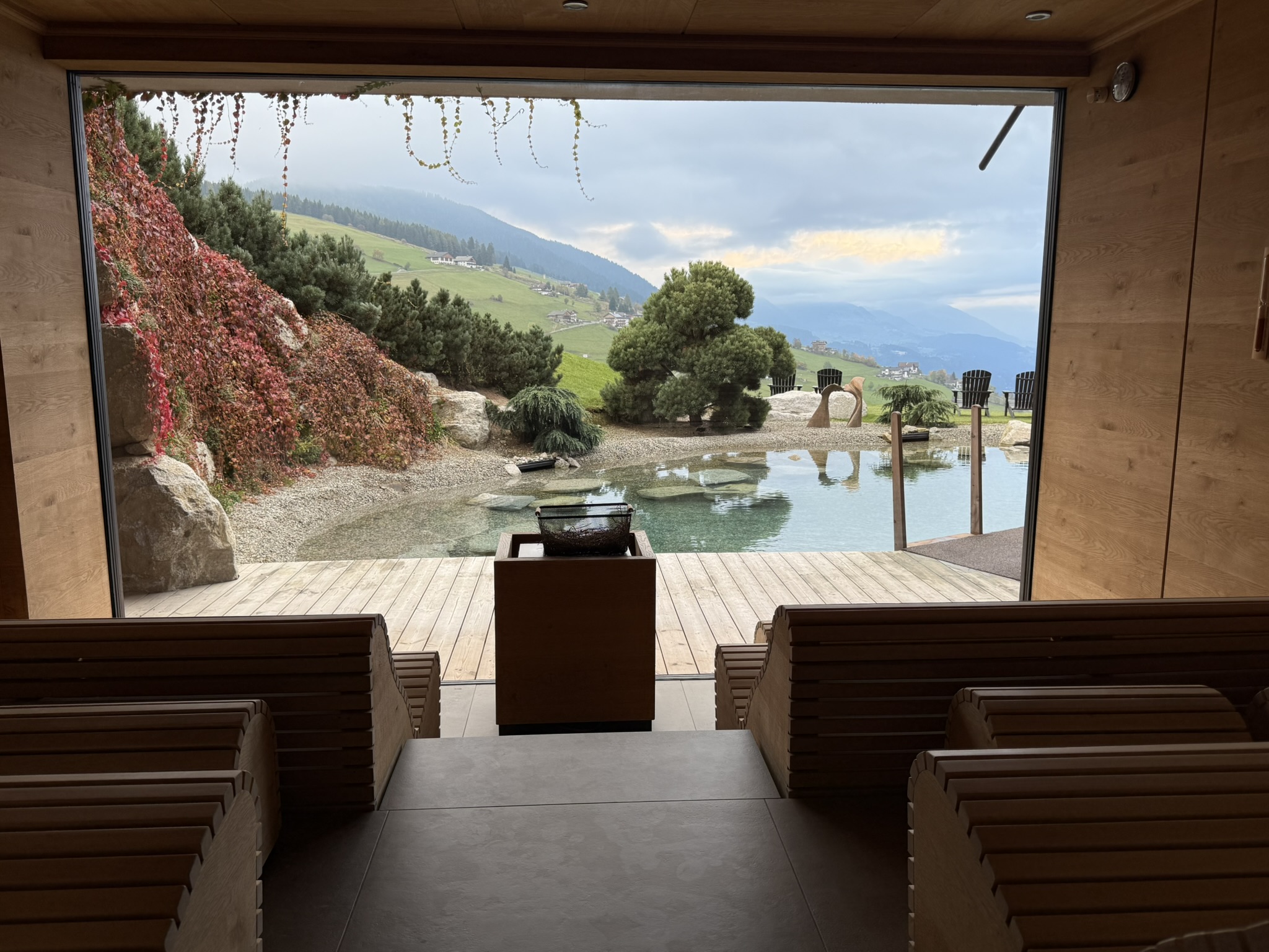Und danach? Im Familiamus-Wellnessbereich verschwindet jede Anstrengung - spätestens beim Batman-Aufguss in der Sauna mit Peter und einem spektakulären Blick ins Tal.