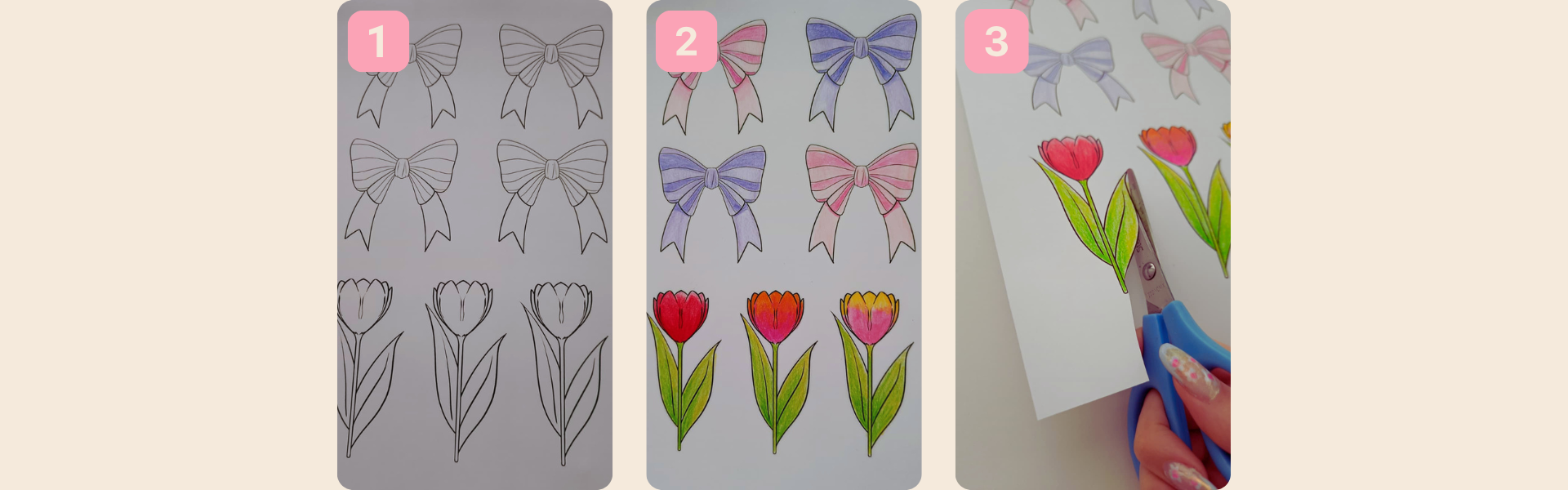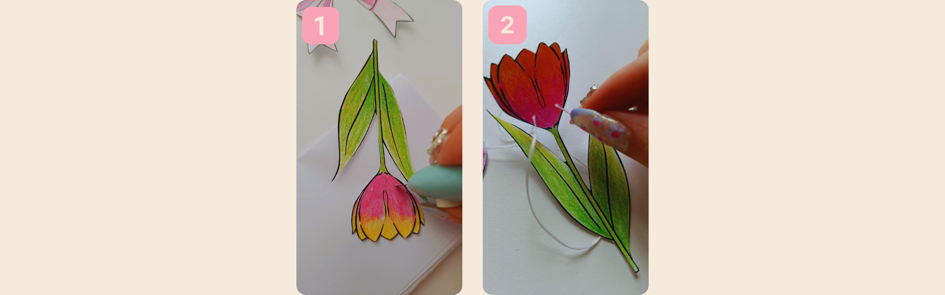 3. Als Nächstes machst du jeweils 2 Löcher in die Motive und ziehst dort anschließend den Faden hindurch.