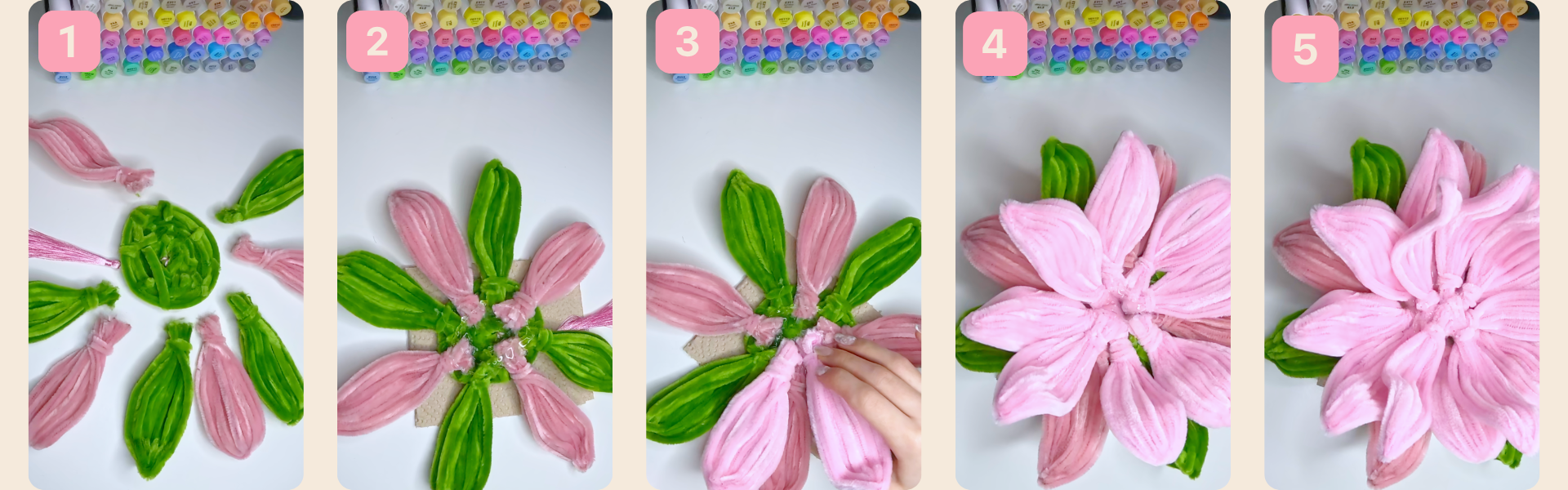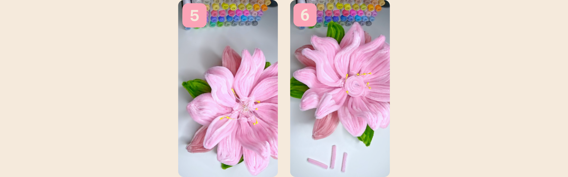 3. Als letztes Klebt ihr alles wie auf den Bildern zu sehen fest, und fertig ist der Lotus!