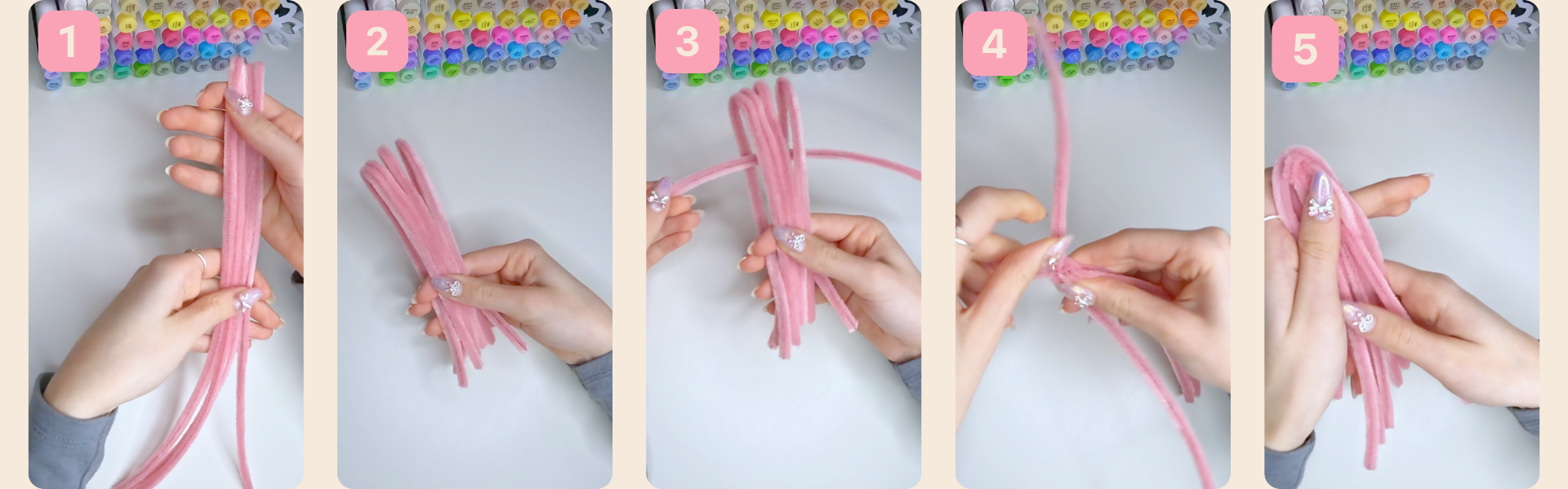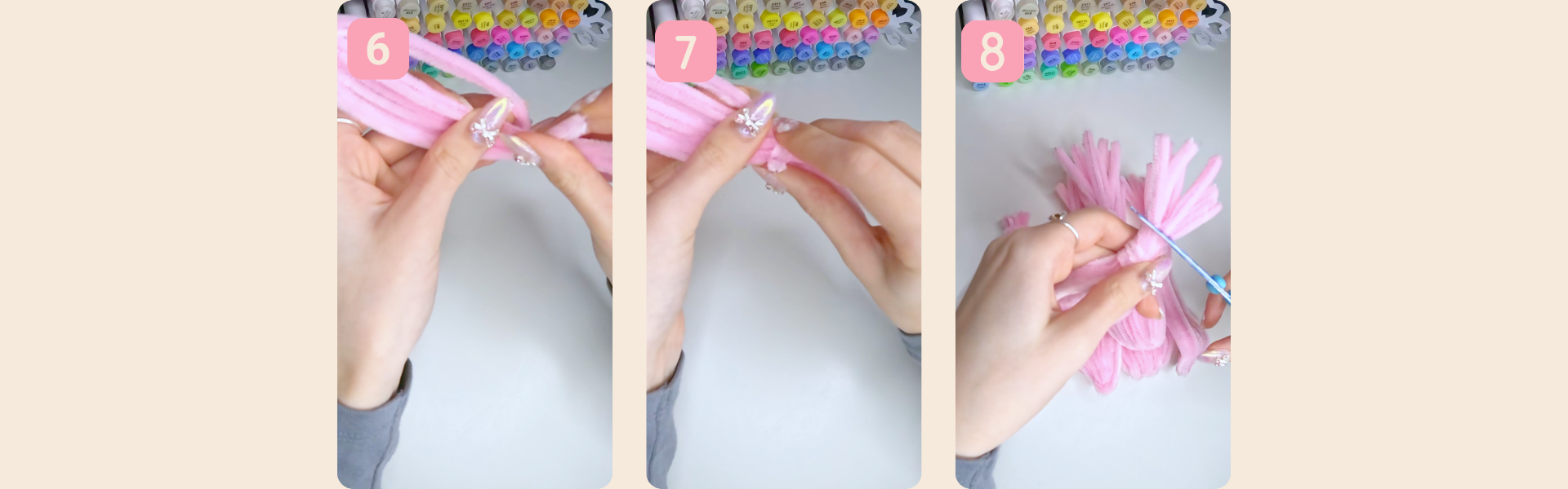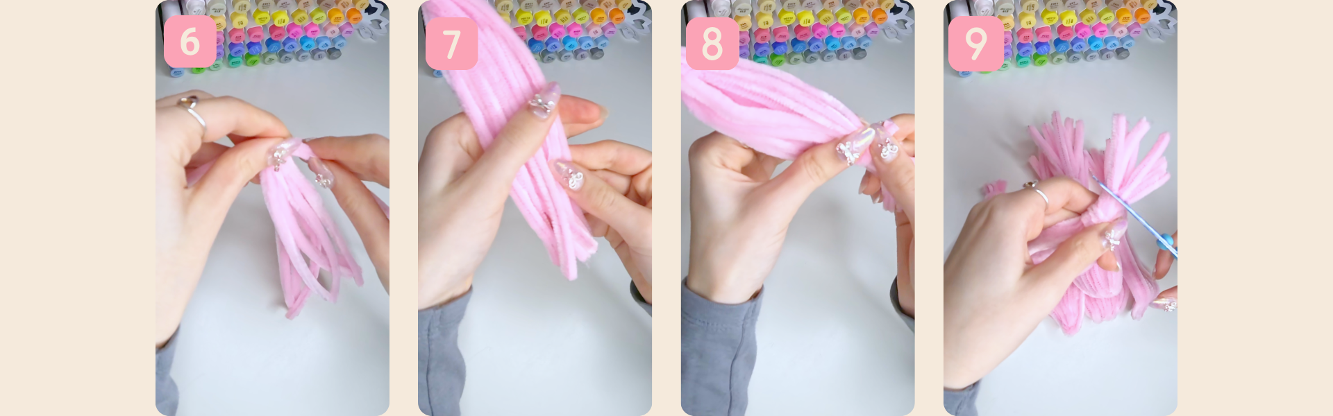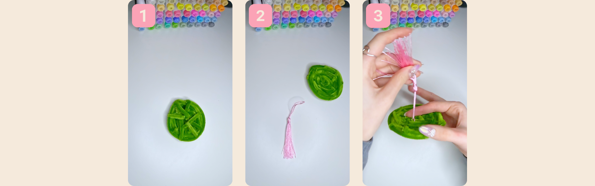 6. Nun befestigt ihr die Quaste an der Grundbasis: