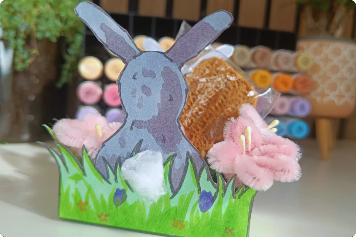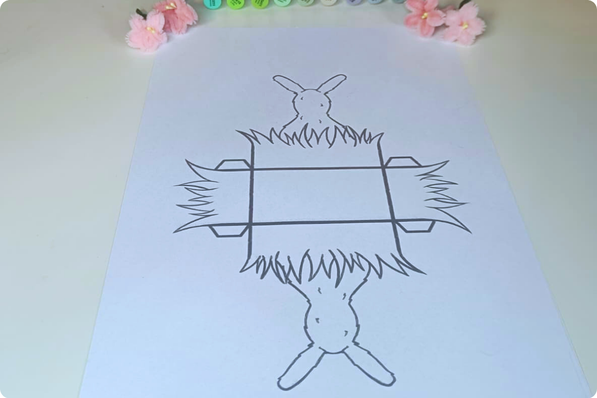 Nun faltest du an den Faltkanten und klebst das Osternest zusammen.
