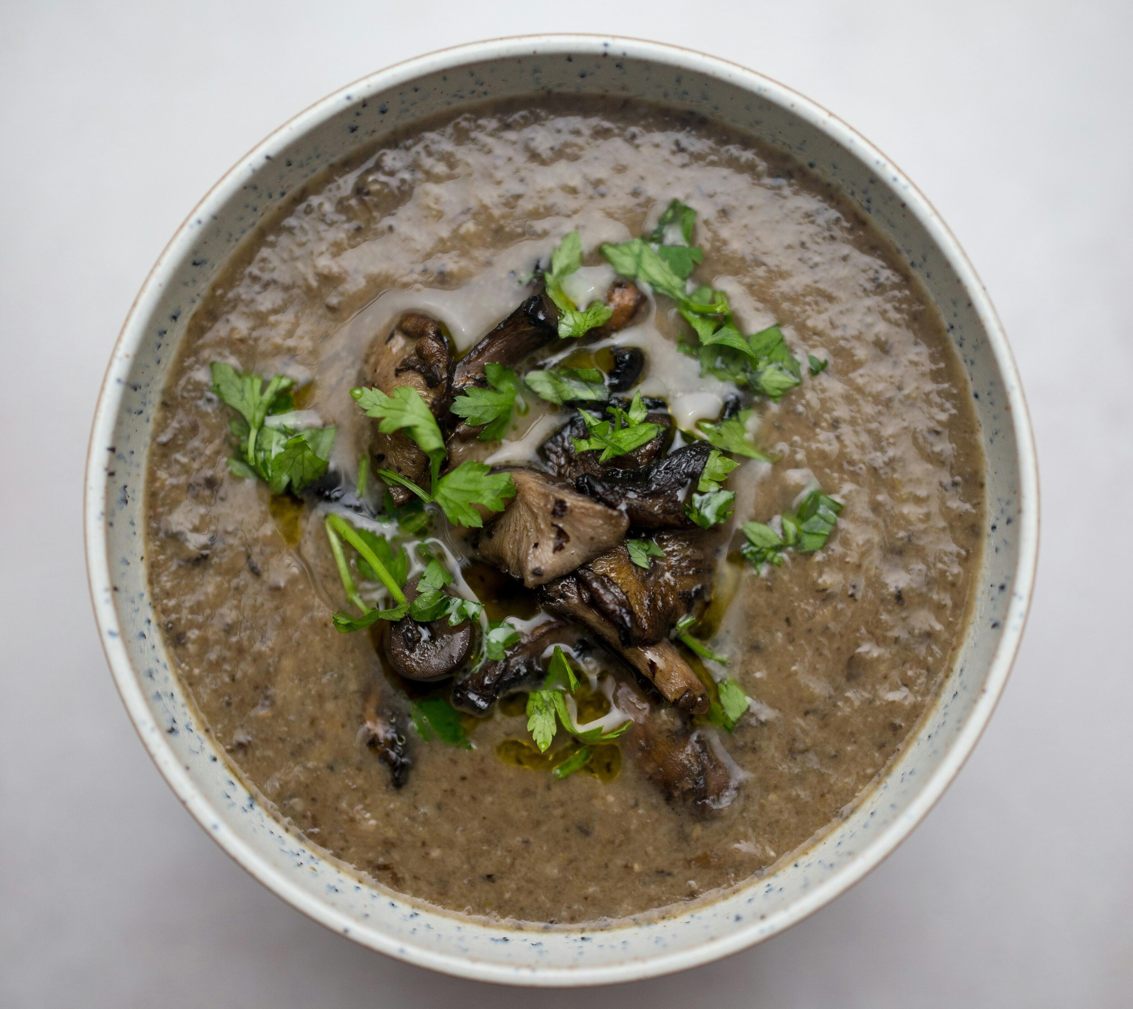 Die Zwiebel und Pilze klein schneiden und in Butter anbraten. Alles mit Brühe ablöschen und 15 Minuten einköcheln lassen. Mit Sahne verfeinern, mit Salz, Pfeffer und Petersilie abschmecken und zum Schluss pürieren - fertig ist eure wärmende Herbstsuppe.