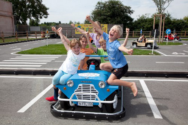 Im 25.000qm große Außenbereich des Tucherlandes finden sich unter anderem zwei Naturbadeseen mit großzügig angelegtem Sandstrand und eine Minigolfanlage mit 18 Bahnen. Ein besonderes Highlight ist der Verkehrsübungsplatz, auf dem alle kleinen Rennfahrer ihre Straßentauglichkeit und ihr fahrerisches Können unter Beweis stellen können. Auf über 600 Quadratmetern warten realistische Situationen aus dem Straßenverkehr wie Einbahnstraßen, Stopp- oder Vorfahrtsschilder. Kinder ab 8 Jahren können sogar einen Tucherland-Führerschein erwerben.