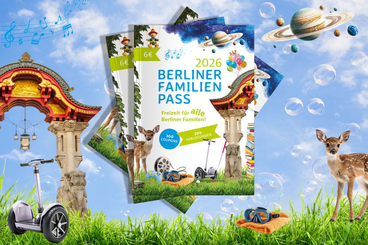 Mit etwas Glück gewinnt ihr eines von 10 Exemplaren des Berliner FamilienPass 2026 und damit 365 Tage voller Abenteuer! Mit über 300 Preisvorteil-Coupons könnt ihr unter anderem vergünstigt den Zoo & Tierpark entdecken, im Illuseum staunen, in der Hüpfburgen-Oase toben oder Shows im Friedrichstadt-Palast erleben. Bei einigen Angeboten wie z.B. den Berliner Eisbahnen erhalten Kinder sogar freien Eintritt! Besonders beliebt: die 200 Familienverlosungen! Gewinnt u.a. Kurzreisen, Konzerttickets, Ausflüge in den Serengeti Park, zur Leipziger Buchmesse oder in den Freizeitpark Plohn. Hier sind unvergessliche Momente garantiert.